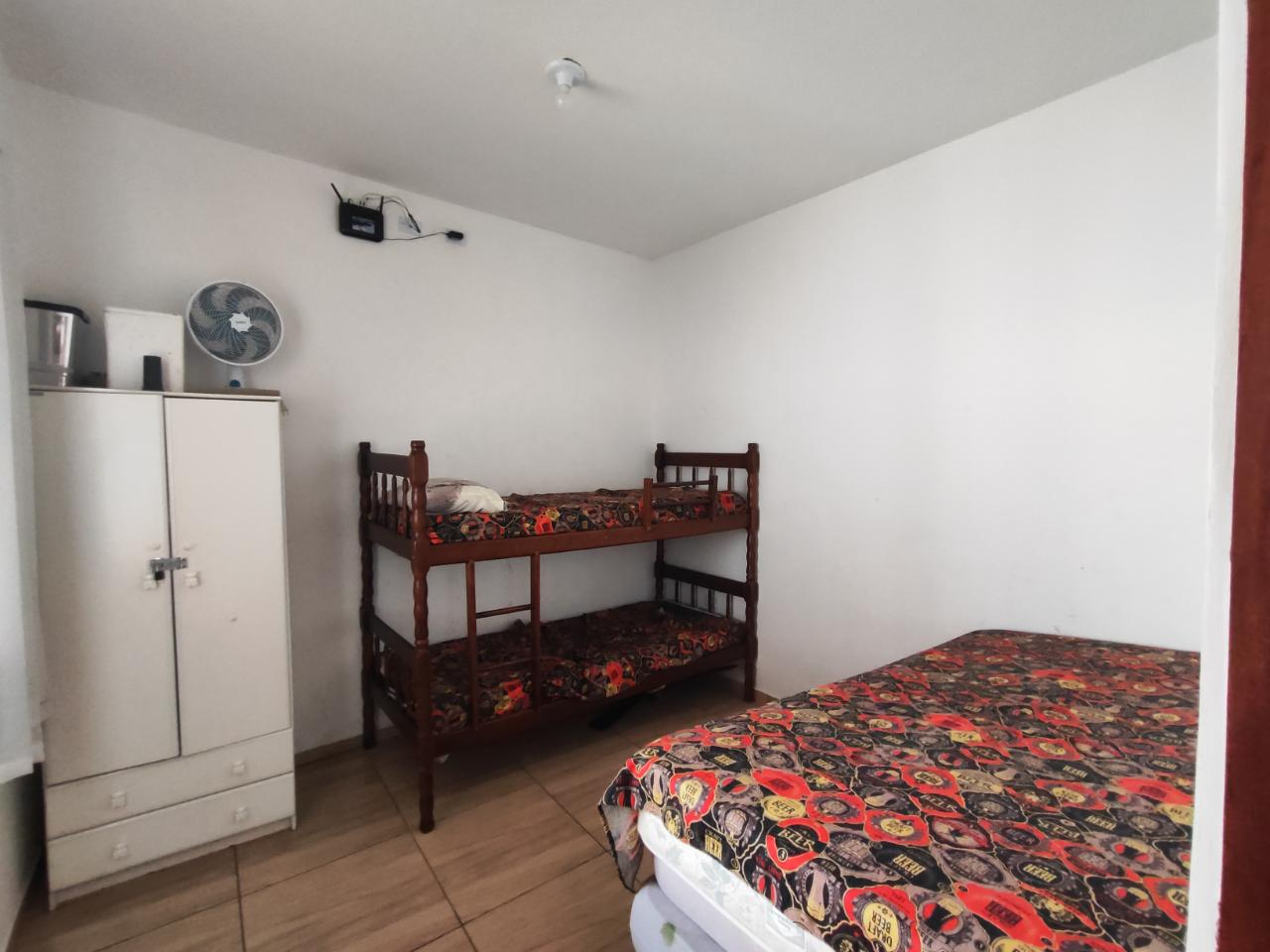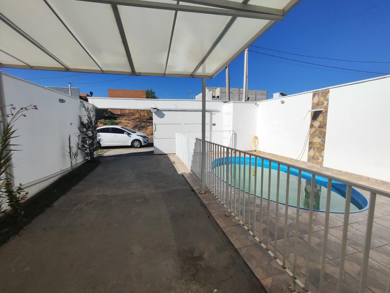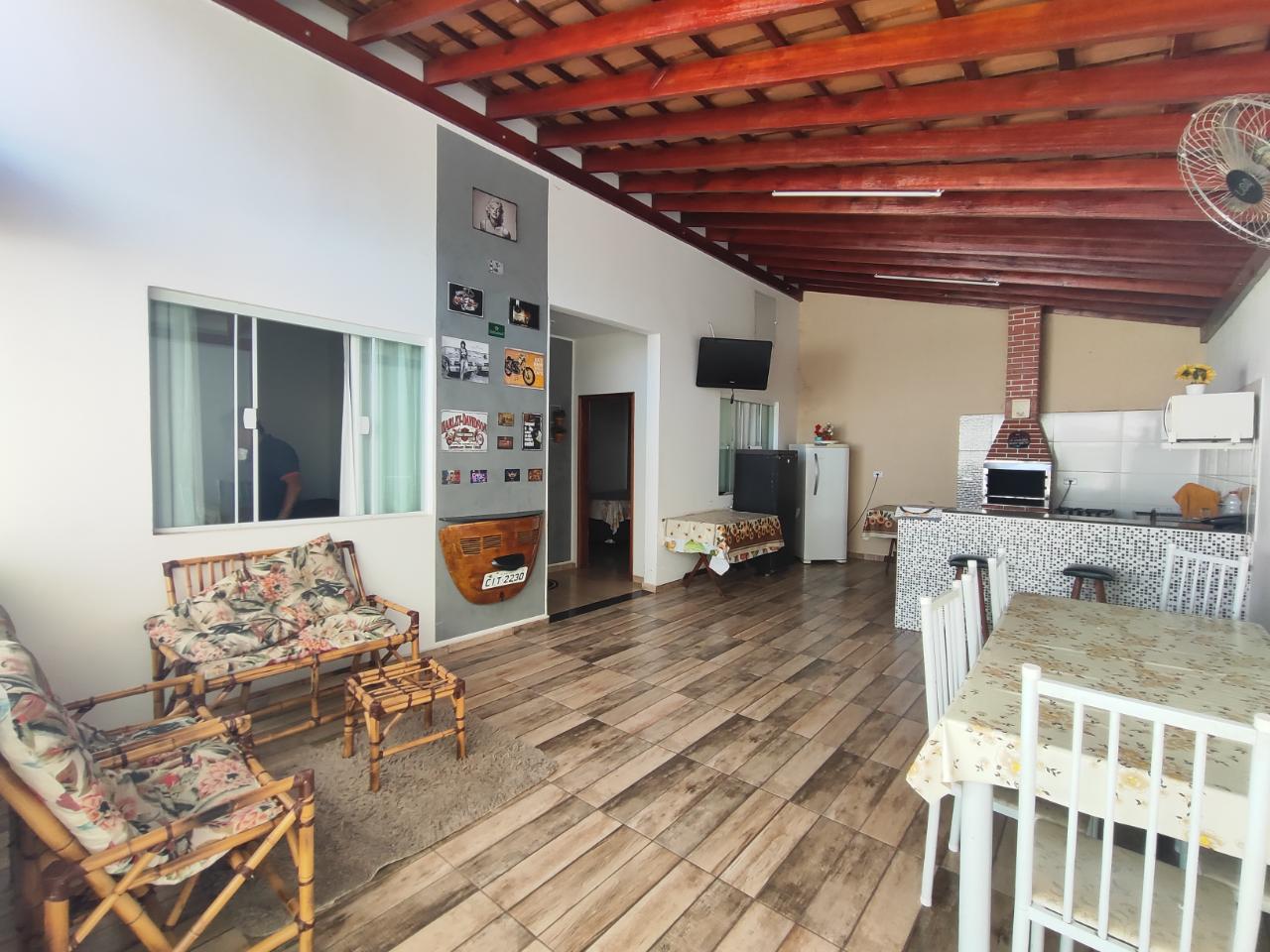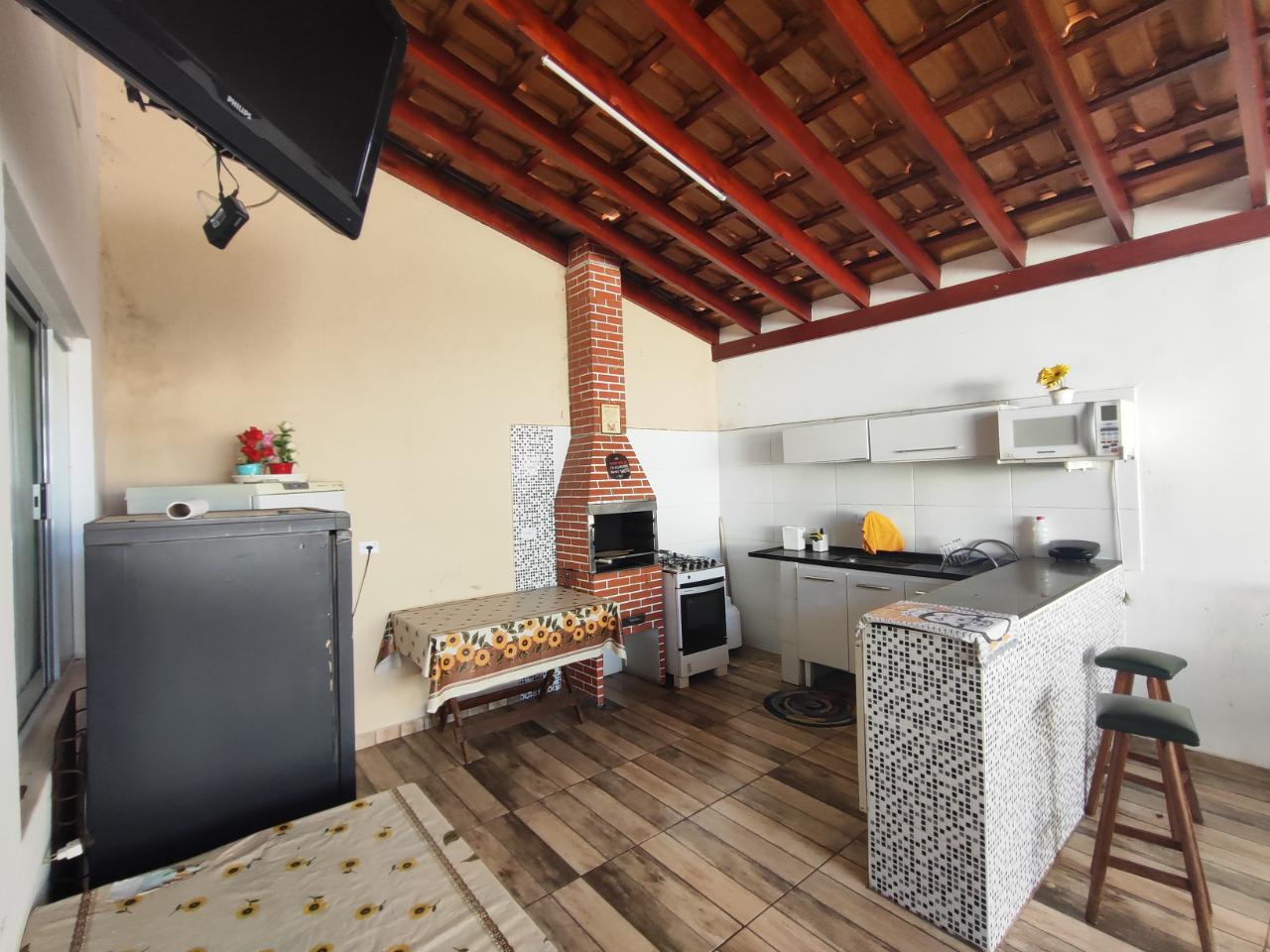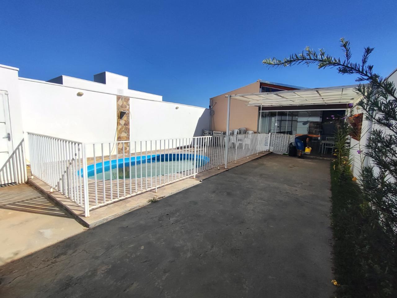 Pequena área de lazer com dois quartos área gourmet e piscina.