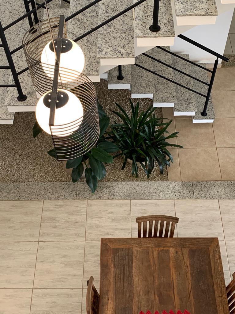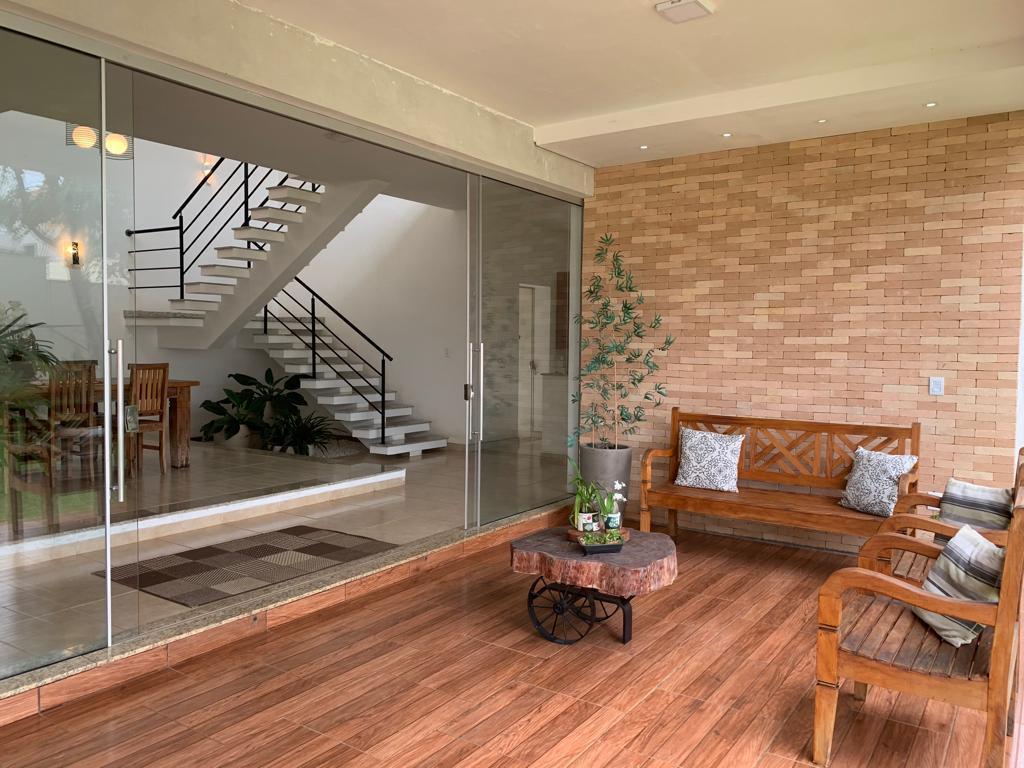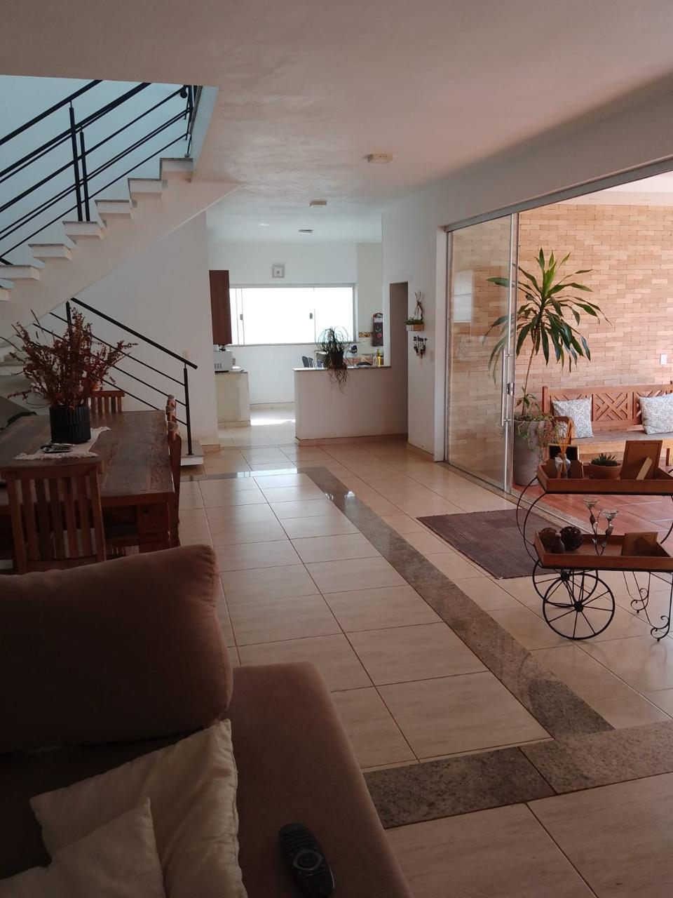 Sobrado: Parte de baixo, Sala 2 ambientes, Lavabo, Ant câmera, Cozinha com armários planejado, Balcão, Lavanderia, Varanda, Garagem para 3 carros, Cerca elétrica, Câmera, Monitor para as câmeras no escritório (andar de cima). Parte de cima3 suítes, Saleta no mezanino, Escritório, Varanda com vista para o piscinão, Varanda em frente a saleta e uma suíte Toda em porcelanato, Escada com granito