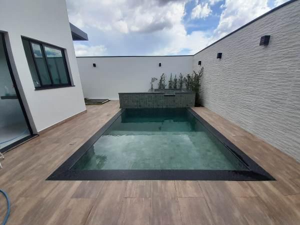Casa nova moderna e aconchegante com 3 suítes sendo a principal com closet, lavabo, jardim de inverno, sala de estar, sala de jantar,cozinha, área gourmet, vestiário, lavanderia coberta,garagem coberta para 2 carros mais 2 vagas descobertas, piscina com hidromassagem e cascata, jardim em toda a área externa, iluminação em led, forro em gesso.
