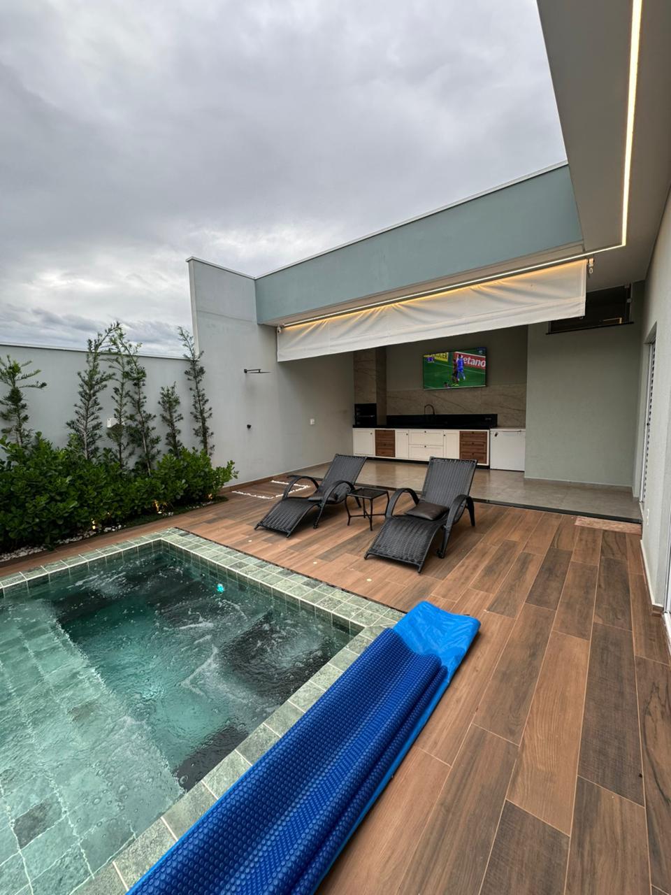 Casa nova e moderna a venda no Portal da Aliança. Maravilhosa piscina de alvenaria com iluminação e hidromassagem, área gourmet com churrasqueira, 3 quartos sendo 1 suíte com closet , sala e cozinha integradas. ( armários Planejados ). Garagem para 2 carros, portão eletrônico.
