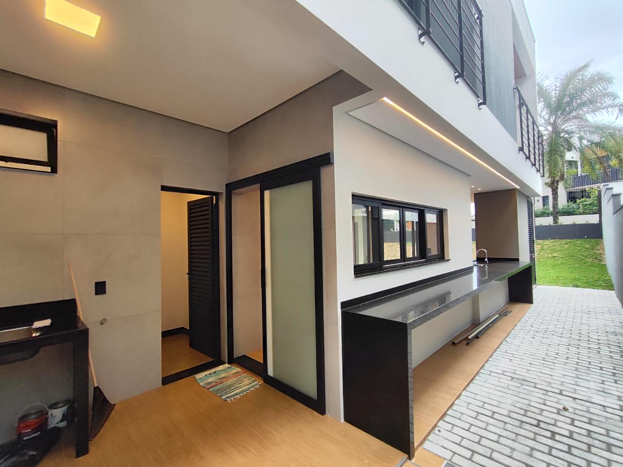 CONDOMÍNIO DAS MACAUBEIRAS!!! Condomínio com grande infraestrutura de segurança e lazer, localizado a 5 minutos do centro e de comércios locais. Oferecemos junto a essa comodidade de lazer e segurança, um sobrado novo e moderno de 4 suítes no superior todas com varanda. A suíte principal conta com closet, copinha para melhor comodidade nas madrugadas, conta também com sala de 2 ambientes e pé direito alto integrando com cozinha, área gourmet com vestiário, quintal gramado e 3 vagas de garagem.