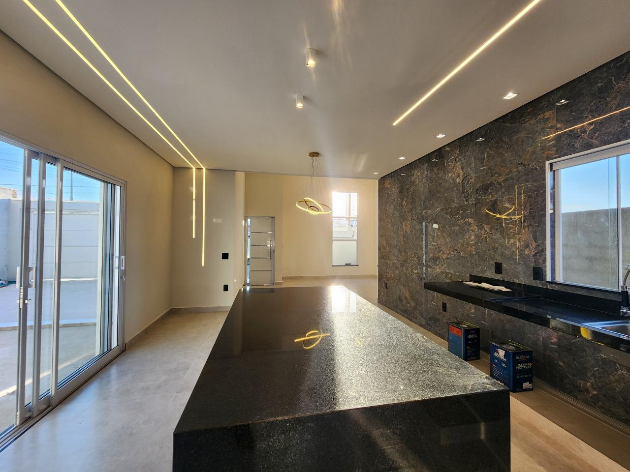 Lindo Imóvel novo, casa térrea com projeto moderno e prático, faixada imponente, projeto de iluminação automatizado muito moderno e bonito, com excelentes acabamentos esse imóvel dispõe de 2 dormitórios sendo 1 suíte com closet, sala com pé direito elevado, cozinha com ilha, banheiro social, lavabo, área de serviço, amplo quintal com possibilidade de fazer uma bela área gourmet, piscina e etc.