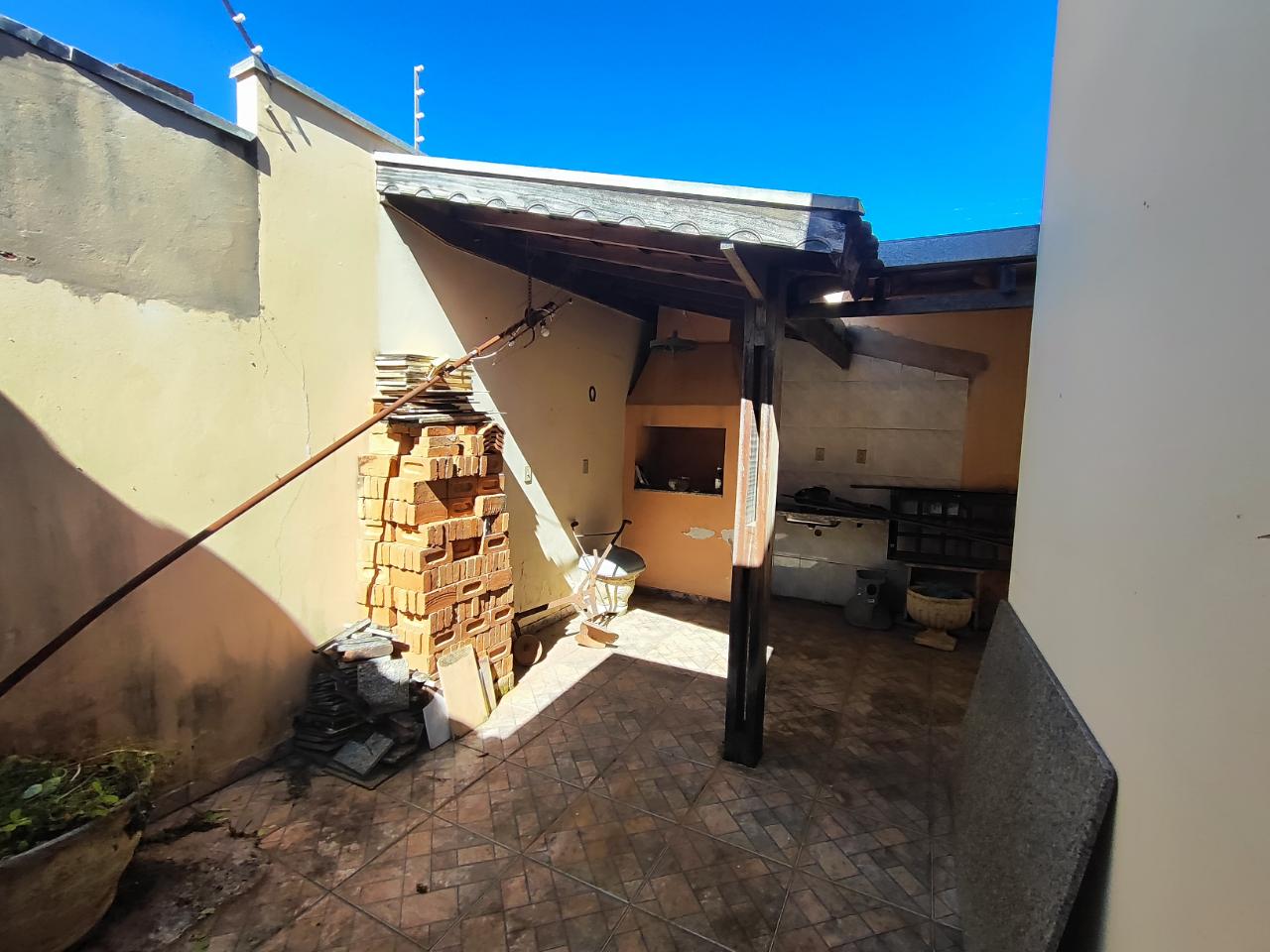 Casa com 2 quartos, 1 banheiro, sala, sala de jantar, cozinha, 2 vagas de garagem, lavanderia e área de churrasco. Casa precisa de reparos de pintura.